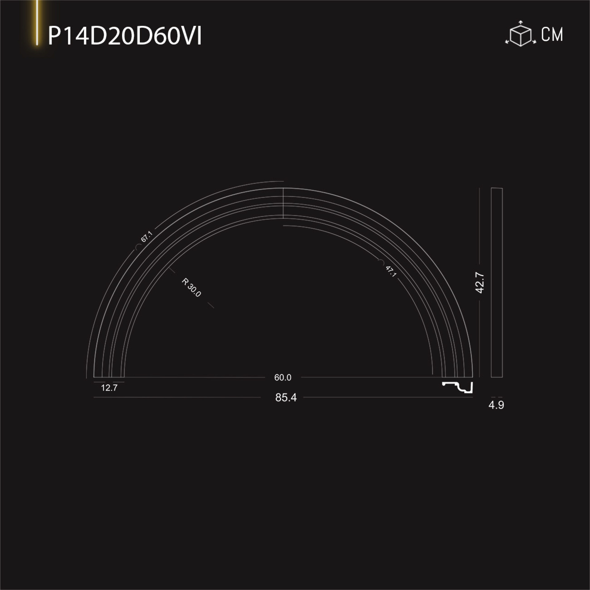 P14D40D260VI Decoratiune din poliuretan pentru margine de perete cu arcada semirotunda