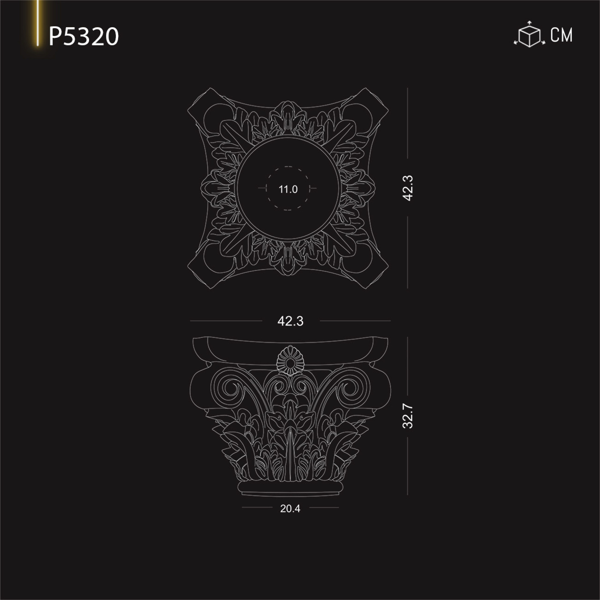 20 cm diameter P5320 Patterned column foot and lower pedestal model, compatible with Corinthian column capital.