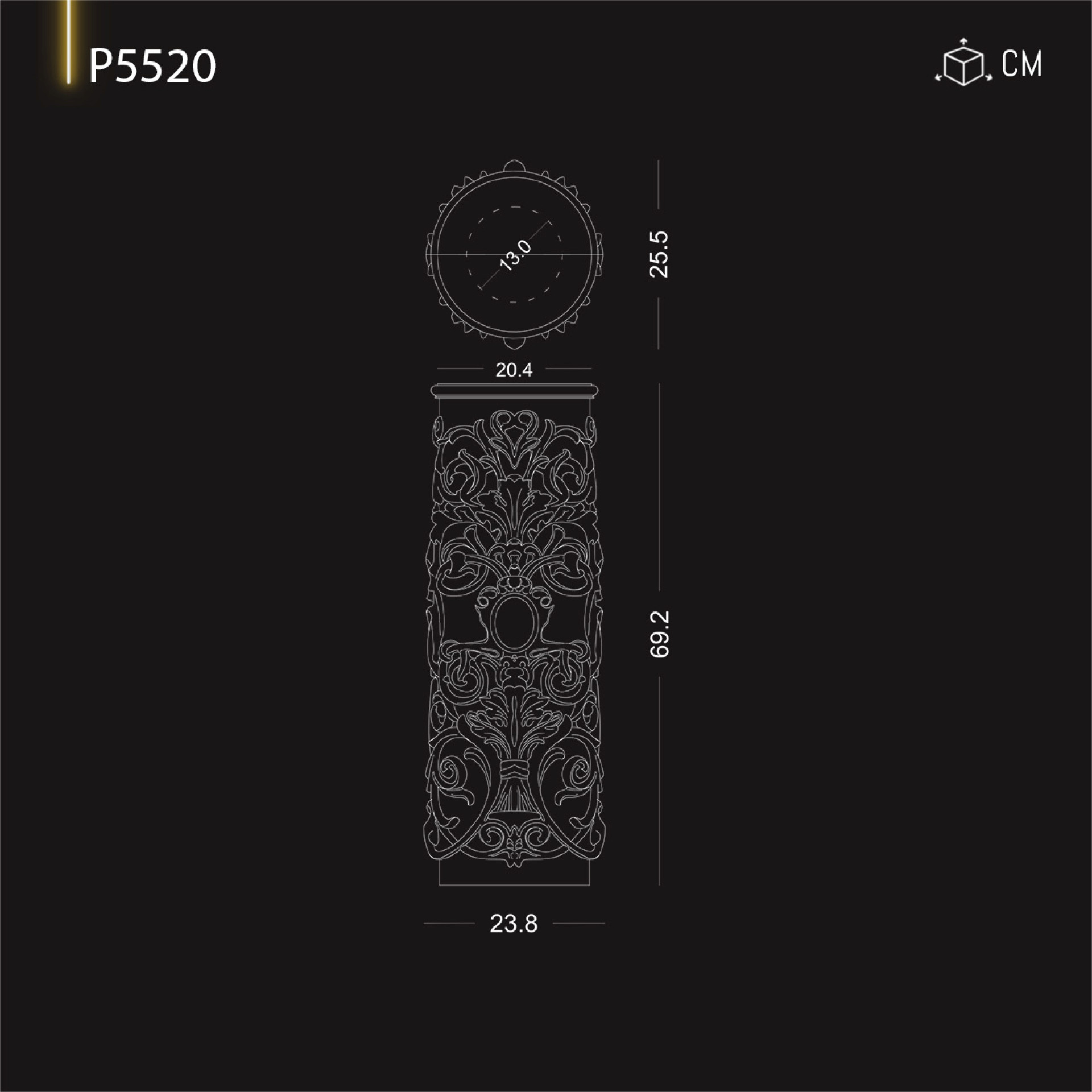 Doric and patterned column base models compatible with the 20 cm diameter P5520 patterned column base.
