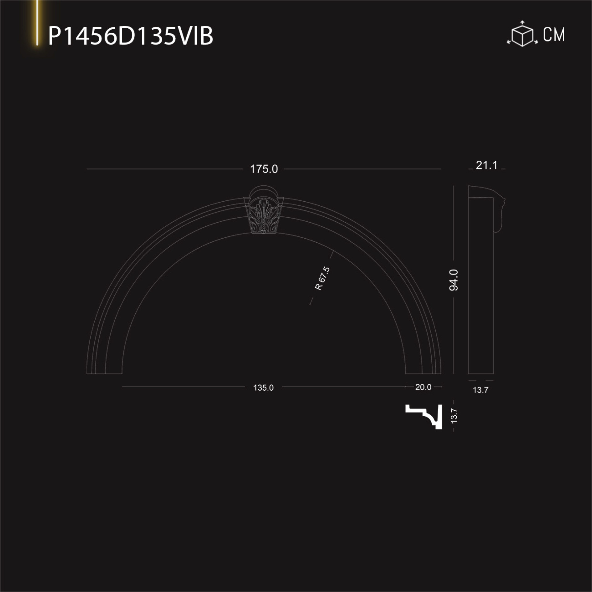 P1456D135VIB Radius crown for 135 cm door window arch