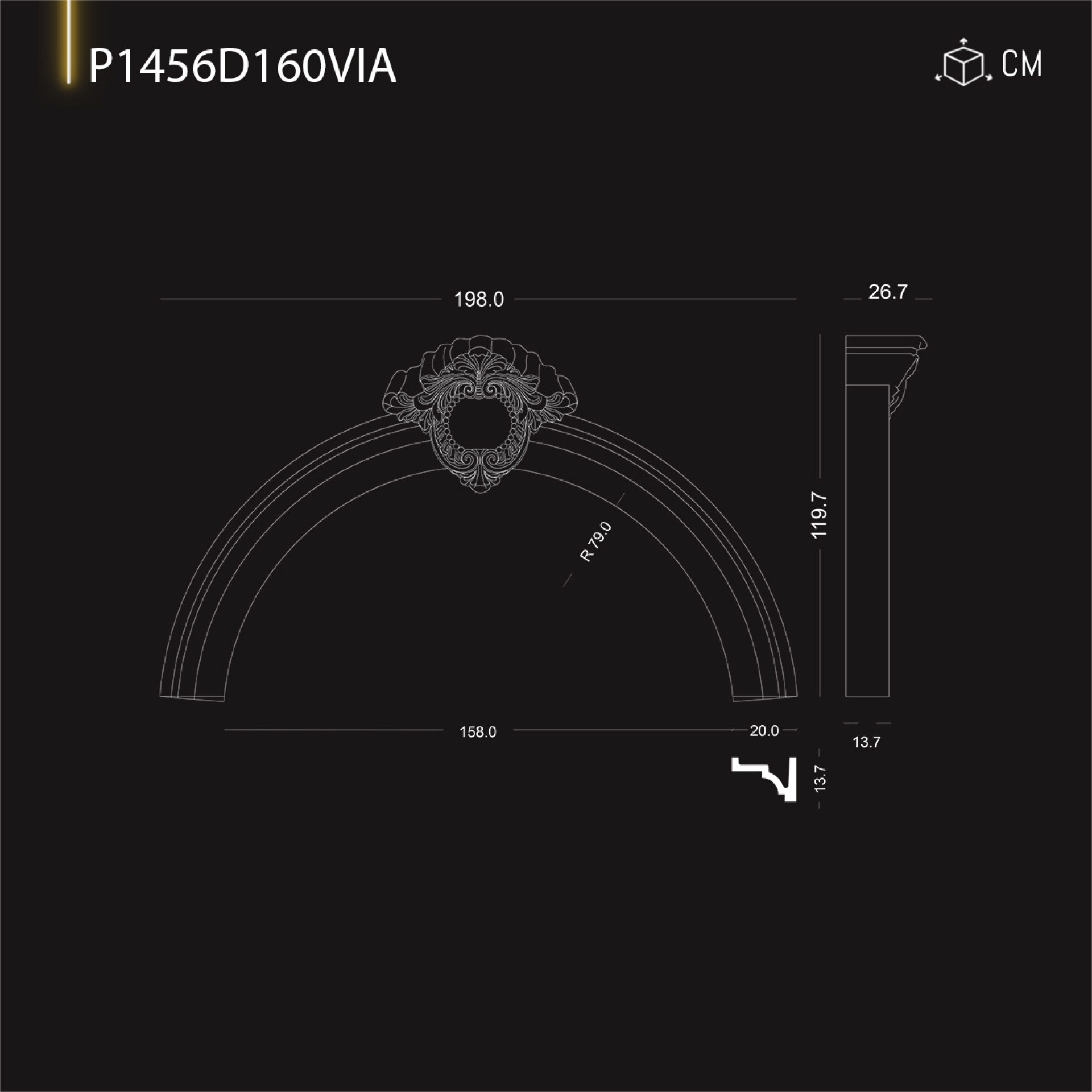 P1456D160VIA Radius crown for 160 cm door window arch