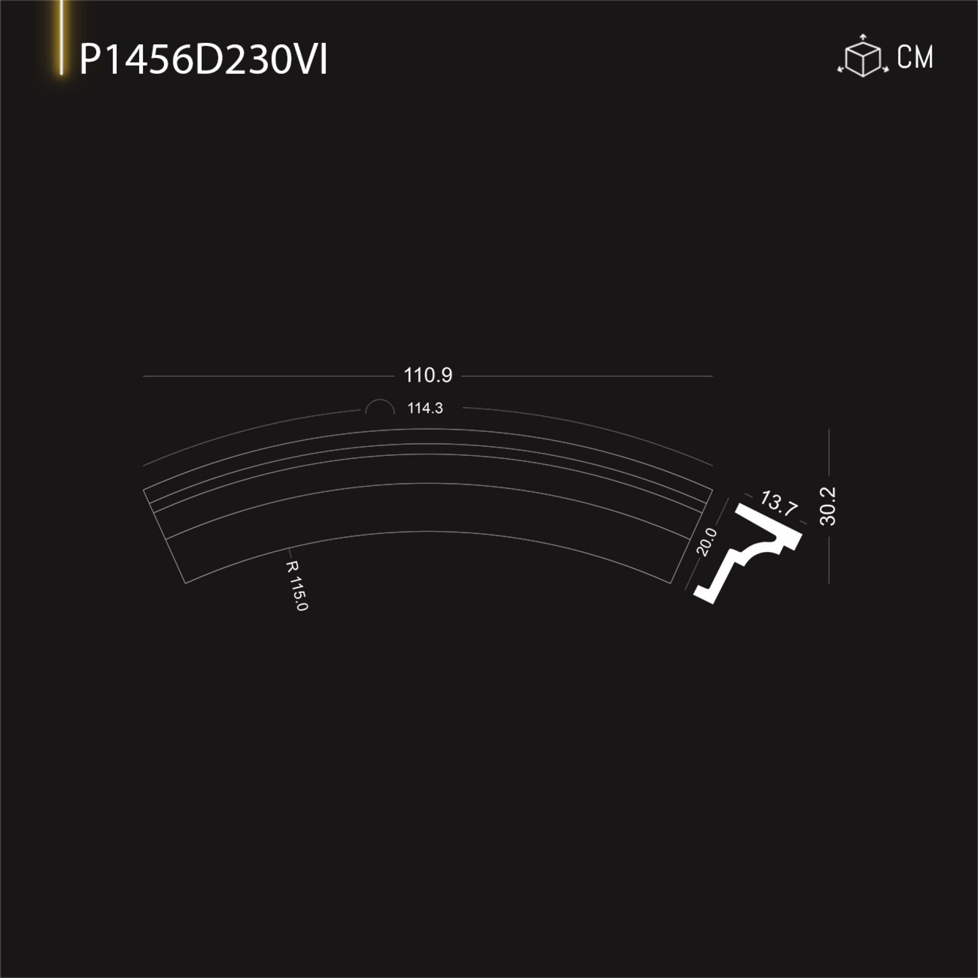 P1456D230VI Radius crown for 230 cm door window arch