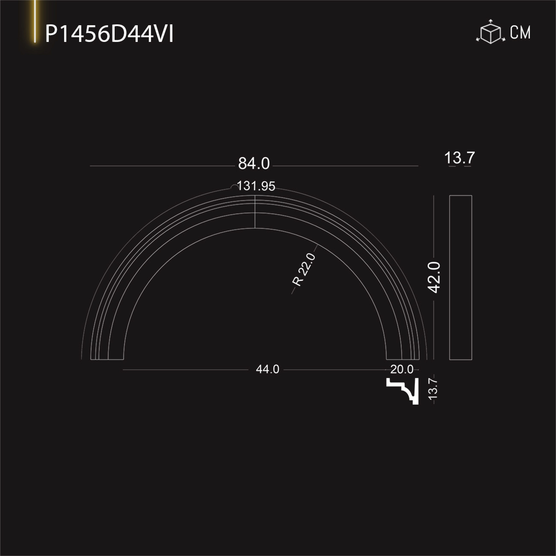 P1456D44VI Radius crown for 44 cm door window arch
