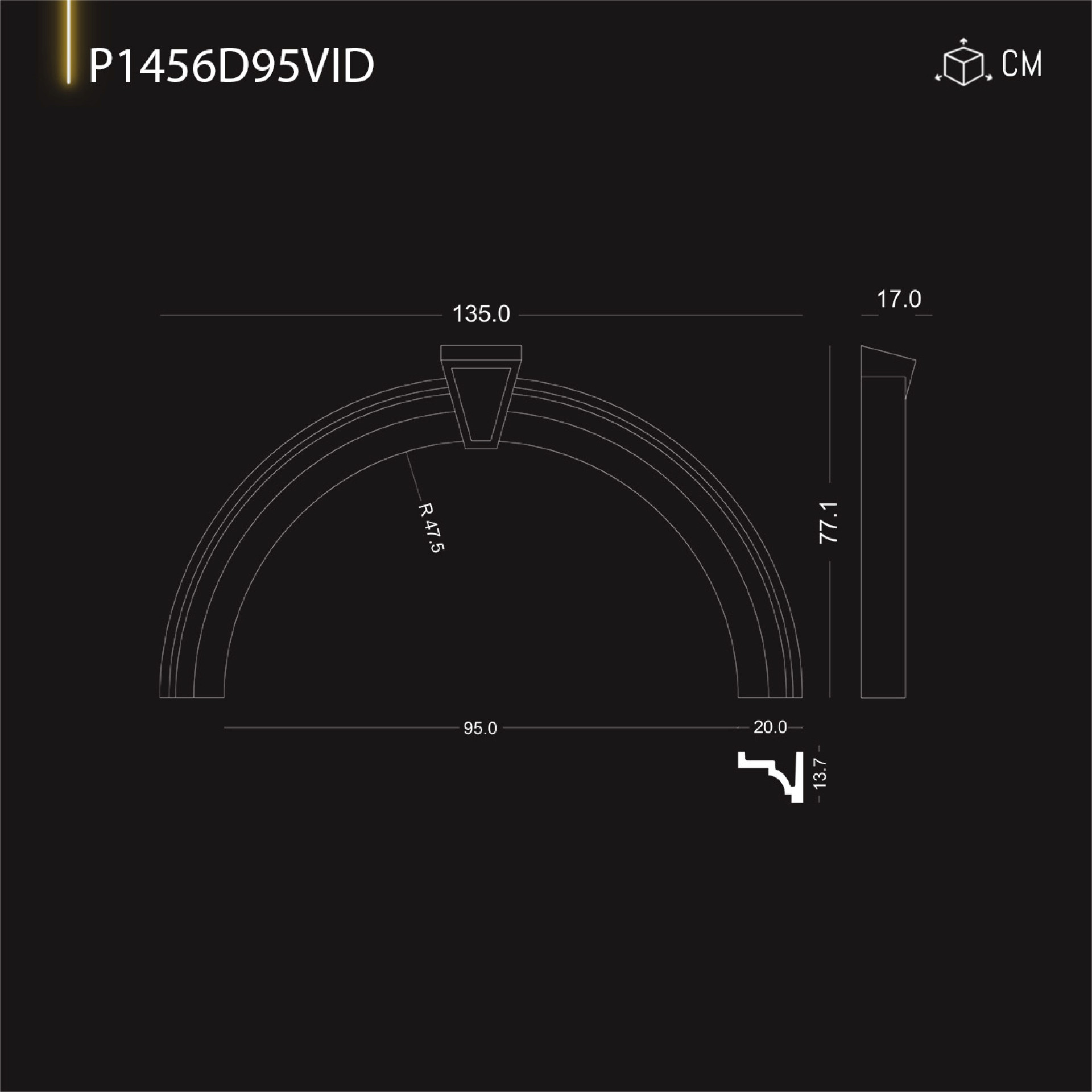 P1456D95VID Radius crown for 95 cm door window arch